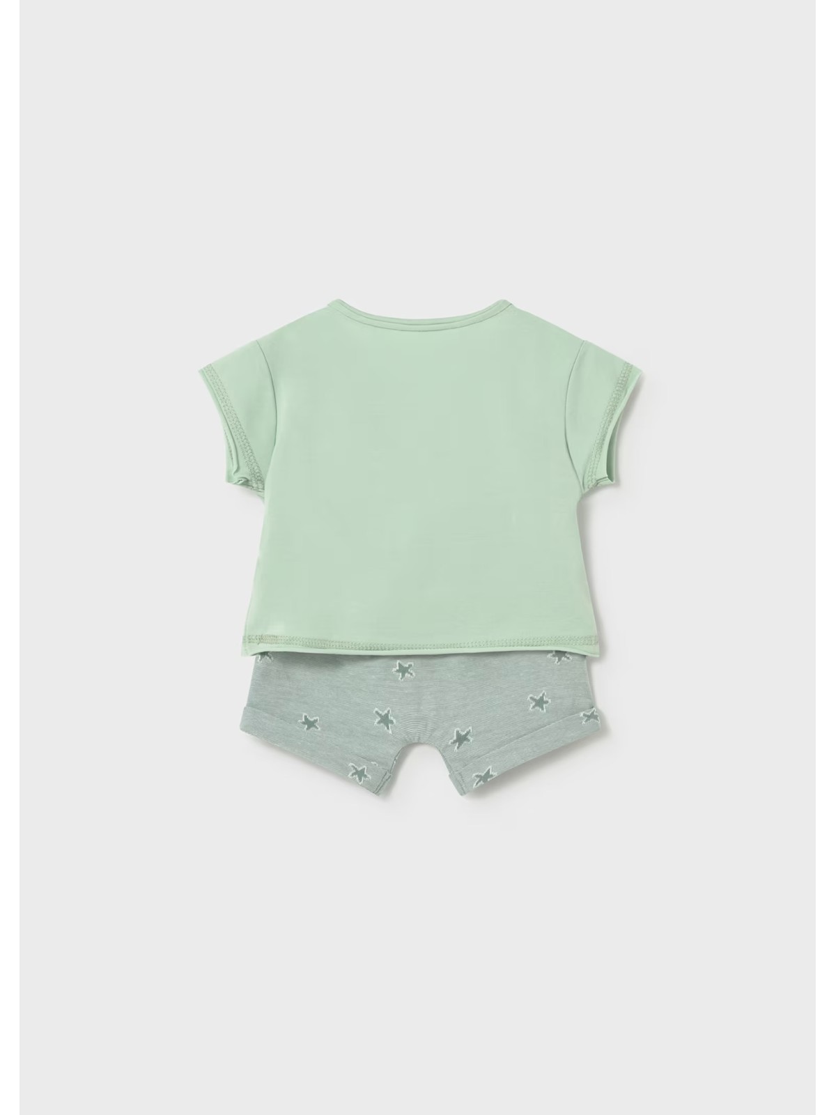 Completo bimbo realizzato in cotone stretch. La maglietta è realizzata in jersey stretch di cotone e ha l'apertura sulla spalla con bottoni a pressione. . I pantaloni hanno vita elasticizzata.
